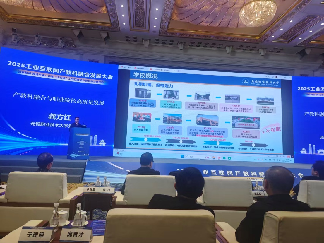 在“双向赋能 融合创新:迈向‘工业互联网+AI’职教新范式专题论坛上,龚方红作题为《产教科融合与职业院校高质量发展》的报告,从对产教融合的理解、产教融合集成平台建设、教师能力素质提高和社会服务能力提升四个方面详细阐述了学校推动高质量发展的有效路径与在工业互联网专业领域取得的显著成效,获得了与会嘉宾的广泛关注和高度评价。