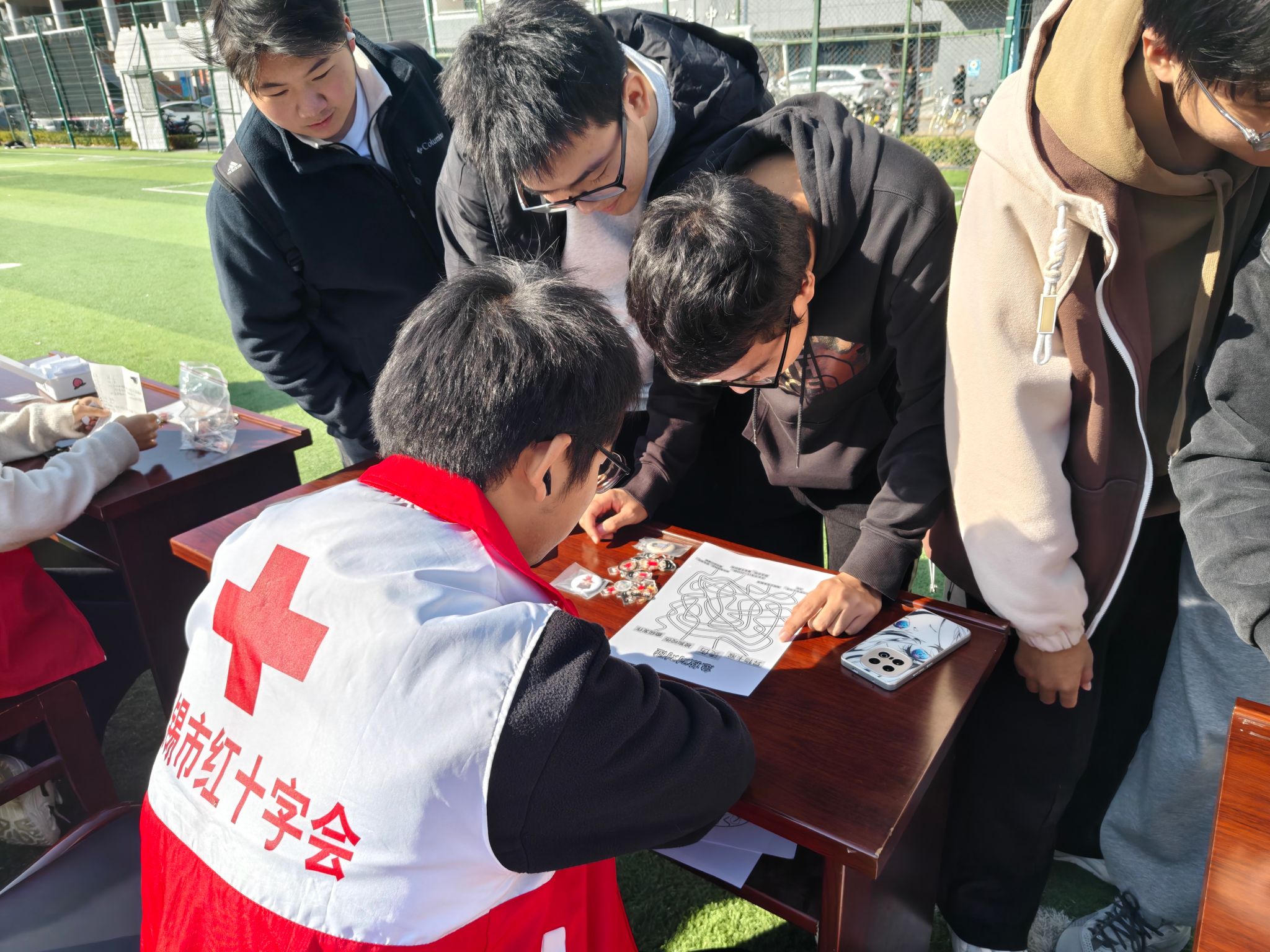 活动前期,校红十字会志愿者团队精心筹备,通过pu校园、班级宣传等渠道发布活动预告,设计制作包含艾滋病传播途径、预防措施、政策保障等内容的宣传手册与科普展板,营造了浓厚的校园防艾氛围。活动当天,主会场设置的互动体验区人头攒动,“防艾拼图”“走出迷宫”“知识问答闯关”等趣味活动将专业知识融入游戏场景,学生在轻松参与中理清认知误区。现场志愿者们耐心解答学生关于检测筛查、权益保障等疑问,发放防艾物资与宣传资料,切实将科学防艾理念传递到每一位参与者心中。手工制作区里,同学们亲手编织红丝带,将写有防艾祝福与反歧视宣言的丝带粘贴在主题展板上,用实际行动传递关爱与支持。