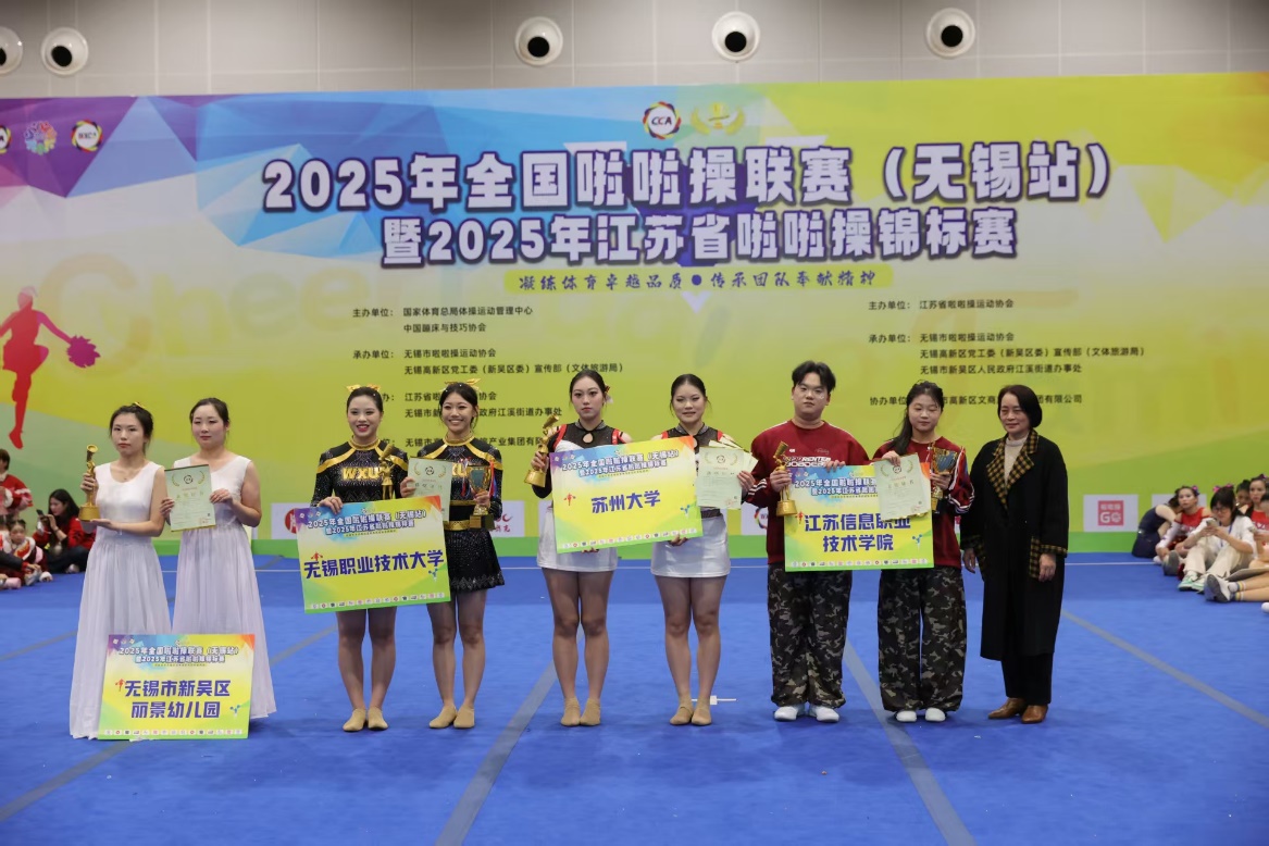 11月30日,2025年全国啦啦操联赛(无锡站)暨江苏省啦啦操锦标赛圆满收官。汽车与交通工程学院空乘专业首次组建的“心跳宇宙”啦啦操队,从全国114支参赛队伍、2254名选手中脱颖而出,斩获全国公开青年丙组(高职高专)花球规定动作、江苏省公开青年丙组双人街舞自选动作两项冠军。