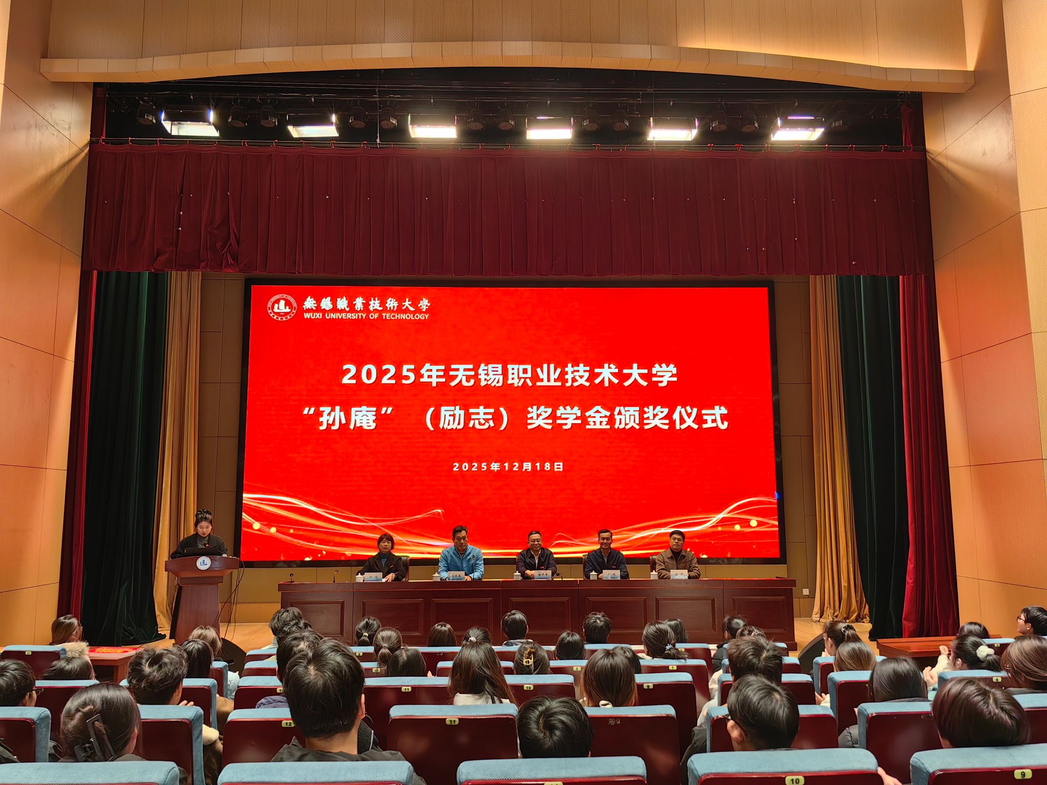 12月18日下午,学校2025年“孙庵”奖学金颁奖仪式在厚德楼一楼报告厅举行。无锡星友包装材料有限公司董事长、仪表911班校友张太友,副校长储开峰,学生处、招就处、集成电路学院相关负责人出席仪式。获奖学生代表、师生代表共同参加了此次活动。
