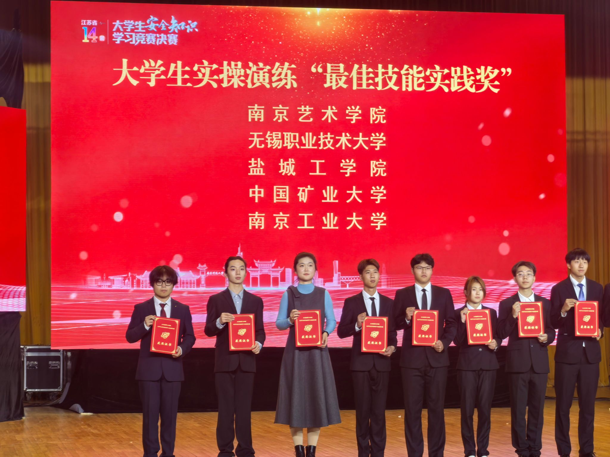 我校选派管理学院郑瑞琪、控制学院刘子洋、物联网学院闫家祺三位同学组队参赛。比赛中,队员们沉着冷静、操作规范,凭借扎实的训练功底与出色的临场发挥,最终以三项满分的优异成绩在本科组脱颖而出获“最佳技能实践奖”。12月28日,我校代表队受邀参加江苏省第十四届大学生安全知识学习竞赛决赛现场观摩并领奖。
