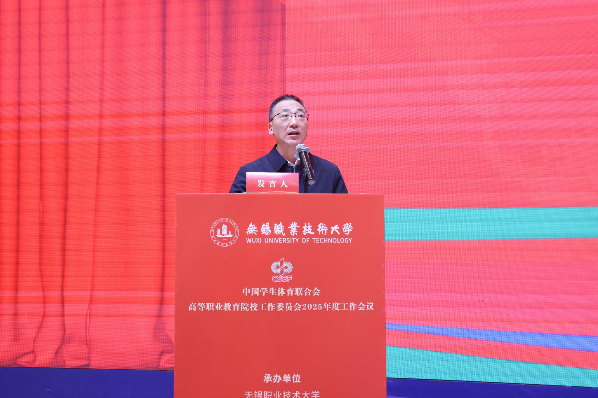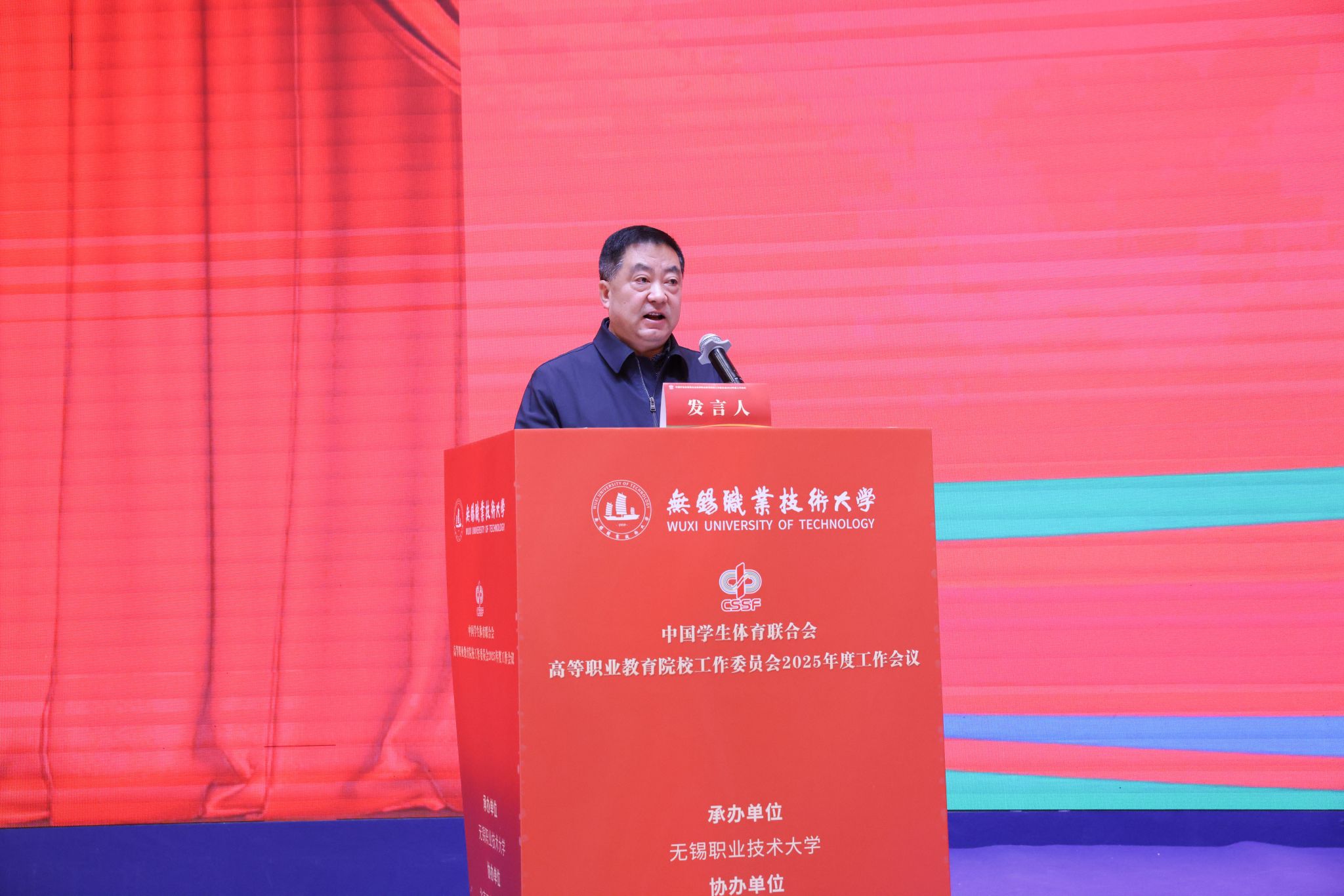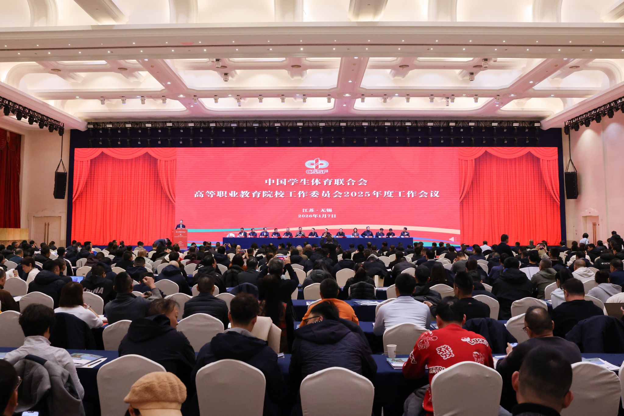 1月7日至8日,中国学生体育联合会高等职业教育院校工作委员会2025年度工作会在江苏无锡举行。本次会议由我校承办,北京工业职业技术学院、南京信息职业技术学院协办。来自全国29个省(自治区、直辖市)311所会员单位的校领导、体育院(系)负责人及骨干教师等近500名代表参加会议。开幕式由校党委委员、副校长储开峰主持。