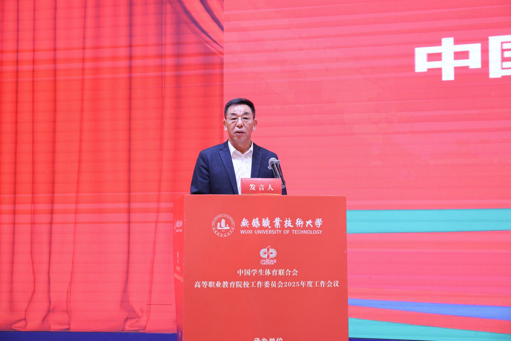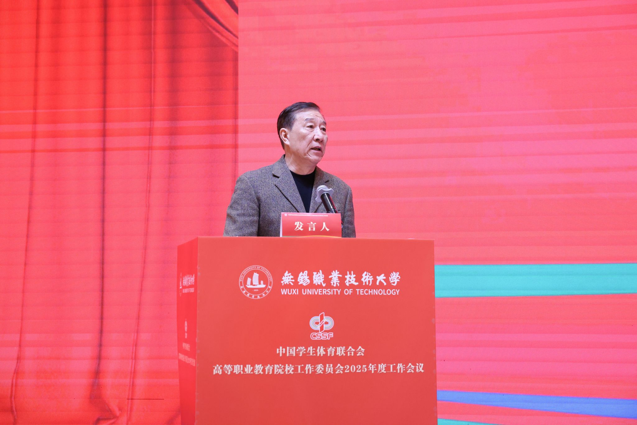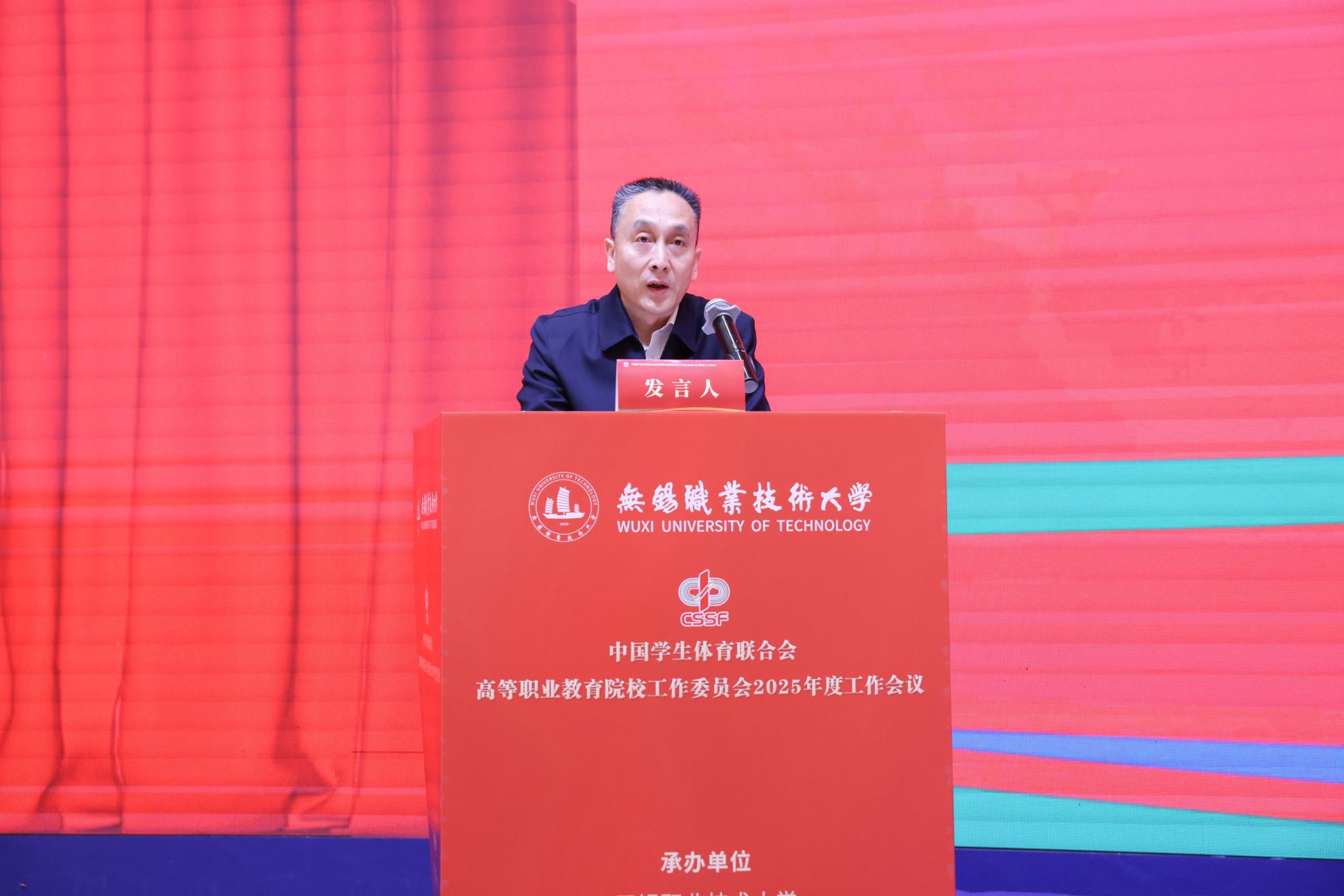 1月7日至8日,中国学生体育联合会高等职业教育院校工作委员会2025年度工作会在江苏无锡举行。本次会议由我校承办,北京工业职业技术学院、南京信息职业技术学院协办。来自全国29个省(自治区、直辖市)311所会员单位的校领导、体育院(系)负责人及骨干教师等近500名代表参加会议。开幕式由校党委委员、副校长储开峰主持。