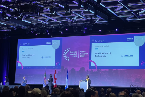 4 月 23 日至 25 日,世界职业院校与技术大学联盟(WFCP)2023 年世界大会在加 拿大蒙特利尔举行,全球共有英国、加拿大、澳大利亚等 30 多个国家 100 多所职业院 校角逐 9 大卓越奖奖项。我校凭借“人才跨国分段联合培养,校企深度融合发展”的国际化专业发展特色和人才培养成效,再获“旅游与酒店管理”卓越奖银奖。学校此前分别获得“应用研究与创新”奖、“个人终身成就”奖,成为国内唯一连续三次获得 WFCP 卓越奖的高职院校。
