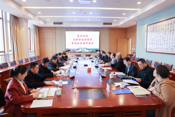 3月23日上午,芜湖市政协副主席袁发林一行来校调研指导。校党委书记龚方红、纪委书记李衔、组织部、学生处、教务处等相关职能部门负责人参加座谈。