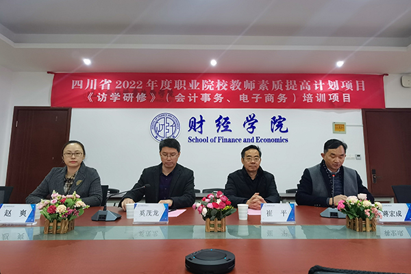 12月3日下午,由我校财经学院承办的2022年四川省职业院校教师国家级培训项目——访学研修(会计事务、电子商务)培训班在明德楼A-215会议室举行线上开班仪式。副校长奚茂龙、继续教育学院院长崔平、财经学院院长赵爽及四川省近20所中职院校的22名学员参加开班仪式。开班仪式由财经学院副院长蒋宏成主持。