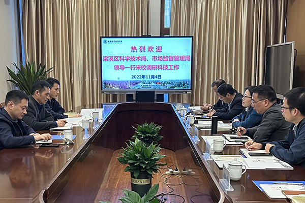11月4日,梁溪区科技学技术局副局长褚年根、市场监督管理局知识产权科科长何学东领导一行3人来校调研科技工作。副校长吴慧媛、科技产业处、中桥管委会、技术合同认证中心等相关人员参加座谈会。