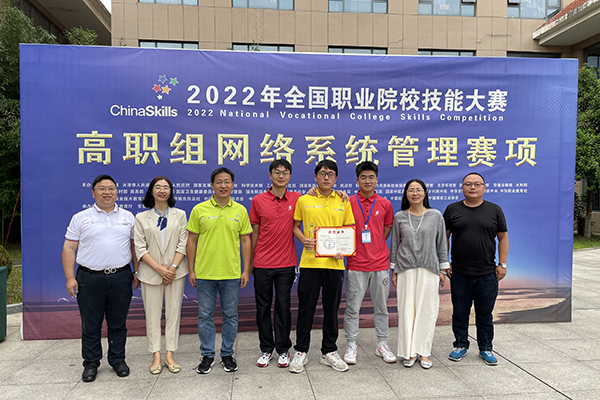 我校参赛队由物联网技术学院网络31932班学生李东进、指导教师物联网技术学院肖颖老师组成,副校长杨雪琴率领教务处及物联网技术学院相关人员随行参加竞赛活动。竞赛日程分3天3场,共计12小时,最终我校参赛队以总分第2名的好成绩荣获大赛一等奖。