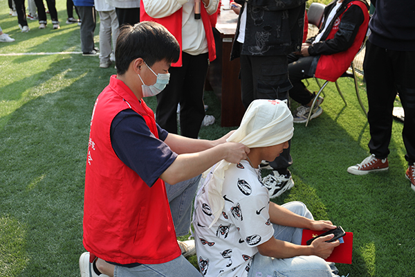培训结束后,同学们还参与了闯关活动,分为“应急救护知识大练兵”“急救名词你比划我猜”和“急救情境演练”三个环节。参与者在规定的时间内全部完成即为挑战成功,获得“应急小卫士”的头衔。“场景式+体验式”的模式,让参与同学进一步巩固了所学知识,有效提高了学生在面对灾害时的自救互救能力。