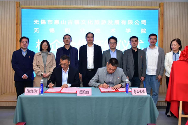双方就校企合作展开了深入交流。鲍坚强指出,随着文商旅融合,更多广阔的平台被激活,迫切需要大量优秀人才的加入。校企合作正是体现优势互补、资源共享的战略举措,既是当务之急,又是长远大计。杨锡栋在致辞中表示,非常欢迎技能型人才走进惠山古镇景区,将这里作为良好的学习和实践平台,发挥自身优势,提高实践能力。