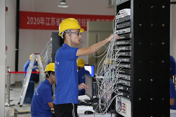 计算机网络应用赛项应用企业真实项目,结合企业岗位技能需求及教学需求,在4小时内完成一定规模的智慧园区网络,考核参赛选手无线网络规划与实施、设备基础信息配置与验证、网络搭建与灾备方案部署、移动互联网搭建与网优、出口安全防护与远程接入、云计算服务搭建与企业应用、综合布线规划与设计、赛场规范和文档规范等方面技能。我校参赛队由物联网技术学院刁春娟、林峰老师指导,网络31831班余浩男、网络31831班韦云峰、网络31931班盛文龙同学组队夺得第一名。