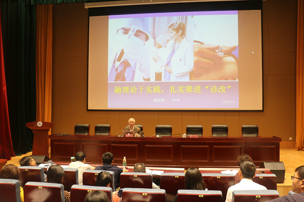 开班仪式后,全国诊改专委会主任杨应菘教授和常州工程职业技术学院原党委书记、全国诊改专委会副主任兼秘书长袁洪志教授分别作了《融理论与实践,扎实推进“诊改”》和《依据文件 聚焦体系 关注运行 引导方向——高职诊改试点院校< 复核工作指引>与< 专家工作手册>起草说明》的专题报告。