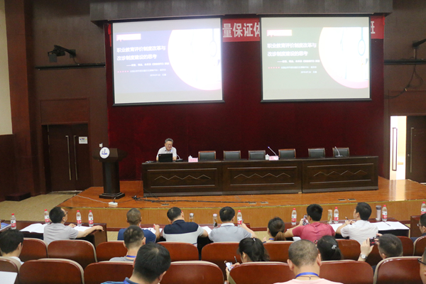开班仪式后,原常州工程职业技术学院党委书记、全国诊改专委会副主任兼秘书长袁洪志研究员作了题为《职业教育评价制度改革与诊改制度建设的思考》的专题报告。
