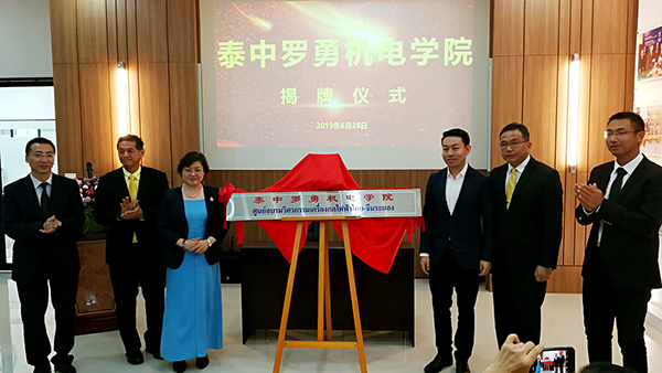 龚方红校长(左一)参与泰中罗勇机电学院揭牌仪式