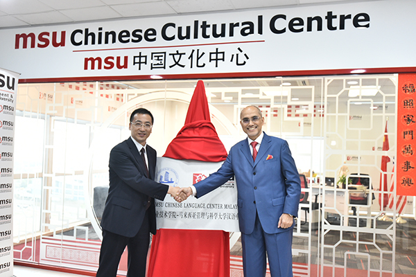 在马来西亚期间,代表团一行访问了马来西亚管理与科学大学(MSU),校长MOHD SHUKRI AB YAJID拿督举行了欢迎仪式。会谈中双方一致认为,通过三年来的精诚合作,两校在教育国际化方面多点开花,硕果累累,把中马两校优质的教学资源成功转化为教育发展的新动能,今后将在教师联合科研、学生海外实习等方面进一步加强合作。会谈后,双方校长共同为“乐鱼注册_乐鱼(中国)-马来西亚管理与科学大学汉语中心”揭牌。汉语中心自去年4月试运行以来已面向651名MSU各国学生开展了45000人次的汉语培训,有效促进了中外文化交流。