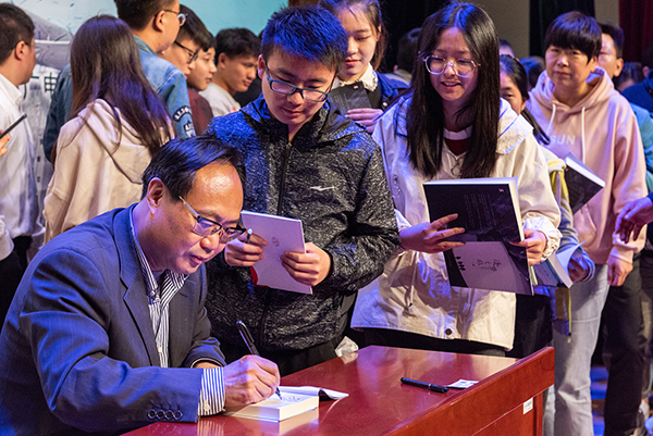 杨雪琴副校长代表学校致欢迎辞,市人大常委会副主任、党组副书记朱民阳讲话,上海市现代领导进修学院院长潘振秋、百花洲文艺出版社上海中心主任郝玮刚先后致辞。活动现场座无虚席,过道也站满了学生。作家安谅携《逐梦之旅》《你跑什么跑》《也许只见一面》等作品与读者见面。无锡歌舞剧团、无锡广播电台、上海师范大学音乐学院等多位艺术家汇聚一堂,以朗读的形式与大家共读安谅作品,演唱由安谅作品改编的歌曲,赢得了现场读者的阵阵掌声。诵读结束后,作家安谅向无锡市作协、无锡市图书馆、“吴韵书香”梁溪书院、阅享文化艺术中心和我校等5家单位赠送了他的作品集,并和现场读者分享了创作体会。最后,安谅先生还现场进行了签名赠书。