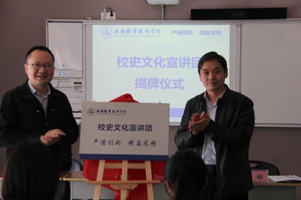首先,梁峰对大学生校史宣讲团成立的意义、服务方式、服务内容做了介绍。他勉励宣讲团全体成员努力学习,钻研业务知识,配合校庆60周年做好校史展厅、无锡院士馆等的宣讲工作。