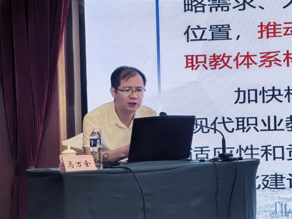 马万全处长为研修班作《守正创新规范提质办人民满意的职业教育》总结报告,他要求:一要准确把握江苏职业教育所处的历史方位和面临的新形式新任务,紧紧围绕“走在前、做示范”的重大要求,牢牢抓住大改革大发展的历史机遇期,着力发展质量高、贡献度高、社会认可度高的现代职业教育,全省职业教育发展规模、办学水平和综合实力位居全国前列;二要守正固本,以规范夯实治校办学提高质量的根基,做到“六个规范”,即认真执行专业设置与调整的规范,认真执行人才培养方案编制与课程设置的规范,认真执行教材选用与建设规范,认真执行课堂教学规范,认真执行学生学习管理规范,认真执行教学质量监控规范;三要创新增效,以改革驱动教学质量跃升,通过“深化产教融合、深化教学改革、深化教学队伍建设”,以产教协同为指引,深度激发教师潜能和育人水平提升、创新教学模式与方法,充分发挥学生潜能,助力职业教育高质量发展。