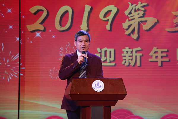演出之前,校党委书记朱爱胜代表学校党委和行政向全校师生员工致新年贺词。朱爱胜书记指出,刚刚过去的2018年,我们伴随着伟大祖国在新时代前进的最强音,学校发展再上新台阶,胜利召开了第四次党代会,吹响了“建设领军全国的智能制造特色校、创建特色鲜明的高水平应用技术大学”的前进号角。这一年,我们的教育教学改革成果丰硕,科研服务水平持续提升,学生服务工作成绩显著,师资队伍建设取得突破,国际影响力持续扩大,文化建设不断增强。2019年是承上启下、继往开来的关键一年,我们要以学习贯彻习近平新时代中国特色社会主义思想为首要政治任务,深入贯彻落实党的十九大精神和学校第四次党代会精神,进一步解放思想、深化改革、对标补差、创新发展,坚定不移把新时代乐鱼注册_乐鱼(中国)推向前进。