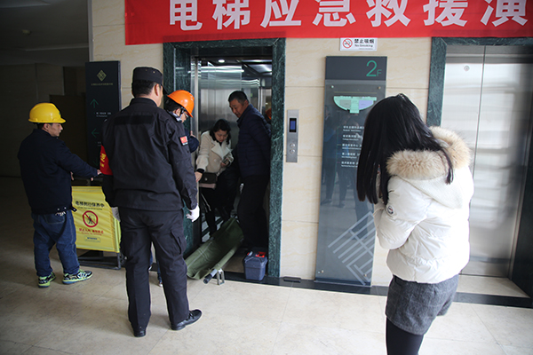 演练模拟图书馆一台电梯突发停电故障,几名乘客被困在电梯层间。被困乘客用电梯内的紧急呼叫装置求救,电梯管理人员接到求救电话后,立即启动救援预案:一方面安排人员到现场与被困乘客联系并安抚乘客情绪,将电梯做好围挡提示;另一方面通知维保单位赶赴救援。救援人员赶到后,立即着手排查故障,确认轿厢具体位置,制定救援方案。15分钟后,顺利解救出被困乘客。应急处置人员行动迅速,程序规范,措施得当。
