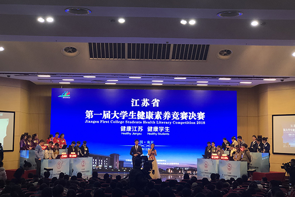 12月8日,由江苏省教育厅等单位主办的第一届大学生健康素养竞赛决赛,在东南大学九龙湖校区举行,我校参赛队伍与24支本专科队伍同台竞技,勇夺二等奖。学生处副处长赵癸萍、指导老师徐瑾副教授和学生参赛选手参加了决赛。