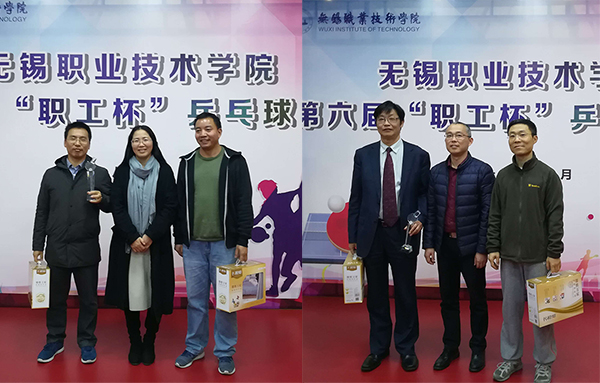 由校工会主办、体育部协办的第六届“职工杯”乒乓球比赛于11月22日-29日在太湖校区进行。在各部门领导大力支持、广大师生员工的积极参与下,本届比赛共有来自校领导、机关党工委、各党总支(直属党支部)的16支代表队近百名乒乓球爱好者参赛。比赛分两阶段进行,第一阶段为分组单循环赛,根据积分排名,小组前两名出线。第二阶段为淘汰赛,捉对厮杀决出具体名次。比赛中各队教练斗智斗勇、巧妙布阵,全体球员努力拼搏、奋勇争先。各队攻防有序,每球必争,拉球、吊球、抢拍、扣杀,打得难解难分,现场掌声与喝彩声此起彼伏,比赛精彩纷呈,高潮迭起,球员们精湛的球技赢得了现场观众的赞誉,淋漓尽致的展现了乒乓球运动的魅力。