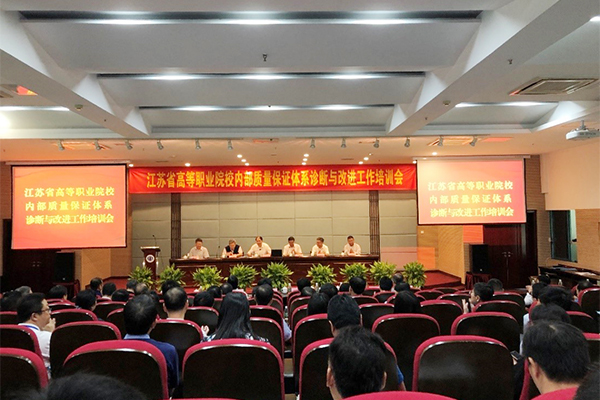 根据《江苏省高等职业院校内部质量保证体系诊断与改进工作专家委员会》(苏高诊改[2018]3号)通知,为全面深入推进全省高职院校诊改工作,省高职院校诊改专委会受江苏省教育厅委托,于2018年9月29日组织召开了江苏省高等职业院校内部质量保证体系诊改工作培训会暨专委会工作会议。江苏省教育厅王成斌副厅长、江苏省教育厅高等教育处邵进处长、江苏省高职诊改专委会主任委员丁晓昌、江苏省高职诊改专委会副主任委员史国栋等领导出席会议并讲话。我校龚方红校长率教务处、人事处、信息化中心、学工处、校办、质控部等部门相关部门负责人全程参加了此次会议。