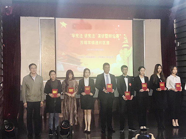 大赛共汇集了来自苏南片区的32所本、专科高校学生参加。我校非常重视宪法的学习、宣传工作,积极响应比赛,由宣传部牵头,聘请马克思主义学院王毅老师作为指导教师,带领物联网31733班的张祯祯同学参加比赛。大赛围绕“尊崇宪法、学习宪法、遵守宪法、运用宪法”主题开展,共分三轮进行,分别由个人自定演讲、即时抽题主题演讲,主题辩论环节组成。比赛中,张祯祯同学紧紧围绕宪法的价值,宪法对公民权利的保障,全面依法治国等主题开展主题演讲,充分诠释了宪法的价值内涵,展示了我校青年学子的宪法意识和法律素养。在即时抽题主题演讲,主题辩论环节中,王毅老师和张祯祯同学针对可能出现的问题积极备战,设计多种应对方案;赛场中张祯祯同学沉着应对,获得好评。经过激烈的角逐,我校张祯祯同学最终获得了一等奖的优异成绩。