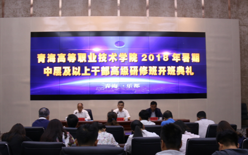 8月24日,由我校承办的青海高等职业技术学院2018年暑期中层及以上干部高级研修班开班,青海高等职业技术学院相关负责人、60名中层及以上干部,我校党委书记朱爱胜及部分培训专家参加了开班仪式。