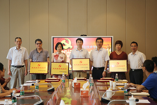 会议在庄严的国歌声中拉开帷幕。谈向群副书记宣读了省委教育工委《关于公布2017年度高校最佳党日活动评选结果的通知》和学校《关于表彰服务型党组织示范点创建单位和2017年度先进基层党组织、优秀共产党员、优秀党务工作者决定》。与会领导为受表彰的先进集体和优秀个人颁奖。钱晓忠、周春兰、周嫄、任重威等4位同志分别代表先进基层党组织、优秀共产党员和优秀党务工作者作交流发言。