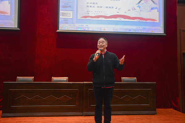4月24日下午,我校星期二讲堂之“吴韵流芳·名家讲堂”,邀请国家一级演员高惠法老师在国际交流中心一楼报告厅为同学们做题为“我对戏曲艺术的点滴感悟”的讲座。