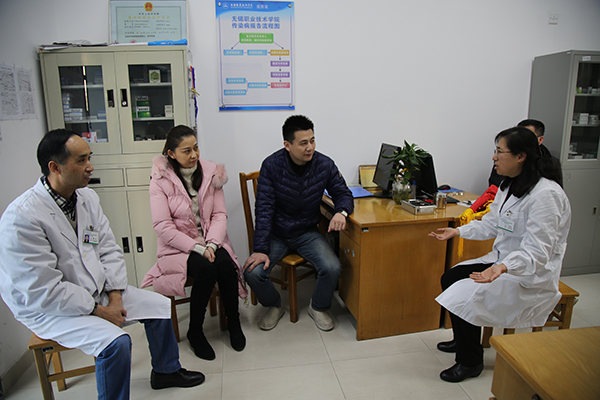 11月23日下午,深圳航空公司工作人员吴立聪在家人和同事的陪伴下来到我校医务室,为李婉莹、梅冰两位医生送上“救死扶伤 医德高尚”锦旗,向救命恩人表示感谢。