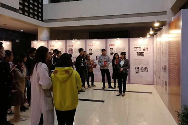 我校师生在演出开始前参观雨花英烈事迹展