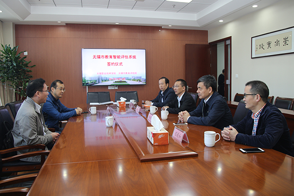 经过前期调研及详细的需求分析,我校参与无锡市教育评估院的“无锡市教育智能评估系统”项目竞争并顺利中标,10月13日上午,评估院院长徐小华一行2人来校交流项目建设内涵,并签署合作协议。