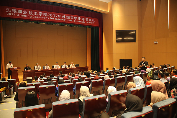 9月25日下午,我校2017级外国留学生开学典礼在综合楼辅楼报告厅隆重举行,校领导朱爱胜、龚方红、华坚、冯渊、顾京、周桂瑾以及各分院、职能部门的领导及负责人、专业教师和汉语教师们齐聚一堂,欢迎新留学生的到来。