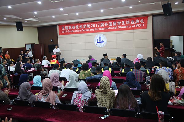 我校是无锡地区首个招收外国留学生的高职院校。8名毕业生全部来自印度尼西亚,他们经过三年在锡学习和生活,不仅掌握相关专业知识和技能,也被中国的文化深深吸引。毕业后,有6名学生已被南京信息工程大学、常州大学免试录取,继续攻读本科;1名学生将赴无锡一家中资企业的雅加达分公司工作;另有1名毕业生决定利用专业所学,回国创业。