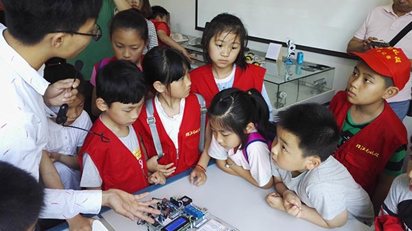 5月13日,为配合教育部、省教育厅做好职业教育宣传周活动,校团委联合江南晚报教育事业部联合开展了以“物联大世界·艺术微天地”为主题的科技、艺术探索体验活动,来自无锡南湖小学、无锡沁园实验小学的40余名同学、家长在学校物联星空实验室和大学生微景观艺术实践工作坊等处参加了活动。