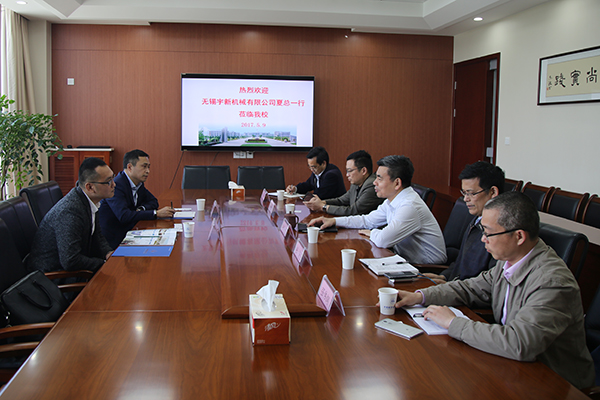 朱爱胜书记对夏秋石、罗晓晨总裁的到来表示欢迎,并介绍了学校的办学特色和社会服务等方面的情况,希望通过加强与宇新机械有限公司的合作,进一步提升我校科技创新人才队伍建设和技术服务能力,拓展我校毕业生的就业渠道。夏秋石副总裁对我校办学过程中取得的成绩表示赞赏,介绍了无锡宇新机械有限公司的发展历史、主营业务和目前的重点工作,并希望与我校开展技术服务、毕业生就业等方面的合作。随后,夏秋石总裁一行还实地参观了我校职能制造工程中心和机械学院实训基地。