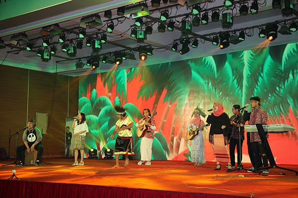 校领导朱爱胜、谈向群、华坚,党委宣传部、学生处、校团委及相关学院负责人、师生代表千余人观看了文艺演出。