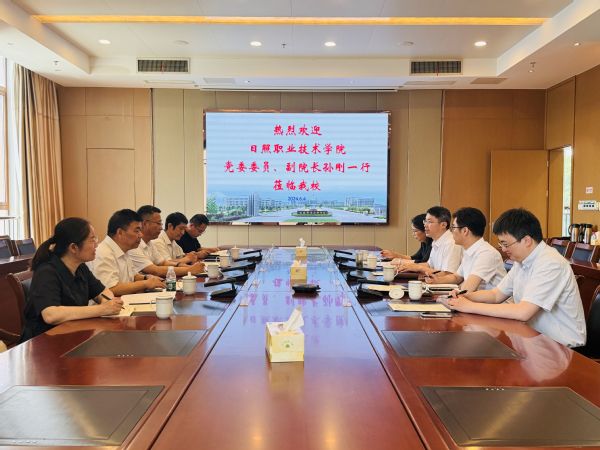 6月4日上午,日照职业技术学院副校长孙刚一行访问我校,重点就构建产教融合共同体、物联网专业建设和实训室管理等专题开展调研。我校副校长奚茂龙,党校办、科产处及物联网学院相关负责人在厚德楼F201会议室接待。