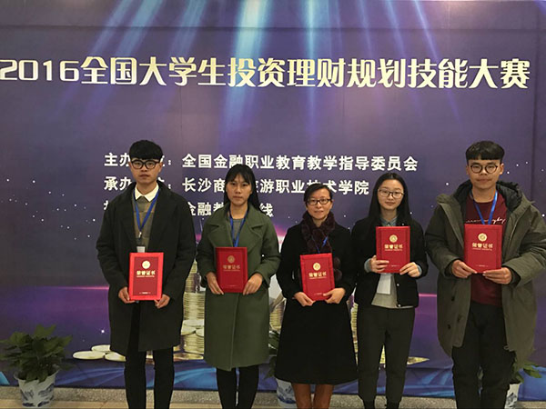 12月17日,由全国金融职业教育教学指导委员会主办的“2016年全国大学生投资理财规划大赛”在湖南长沙举行,我校财经学院组织代表队参赛,最终获得团体三等奖,另有个人二等奖2项、三等奖2项。