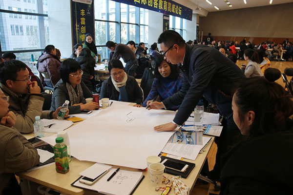 除了听取经验分享外,培训还现场组织开展了小球马拉松竞赛,通过随机组队、设计开发、动手制作等环节,使参加培训的每一个人都充分发挥想象力和创造力,直观体会“创客”内涵。