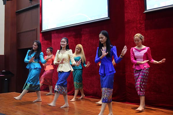 国际教育学院熊英院长着重介绍了我校中外合作交流情况及留学生招收相关政策。我校师生为大家表演了精心准备的太极、舞蹈、民乐演奏等节目,印尼、老挝等外国留学生也以独具风情的民族舞蹈和吉他伴唱等节目参与到这场文化交流活动中。