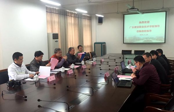 4月26日上午,广东建设职业技术学院院长赵鹏飞一行5人来我校交流考察,校党委副书记谈向群、后勤处及信息化中心相关人员在国际交流中心205会议室接待来访宾客。