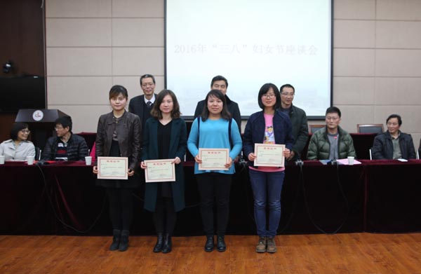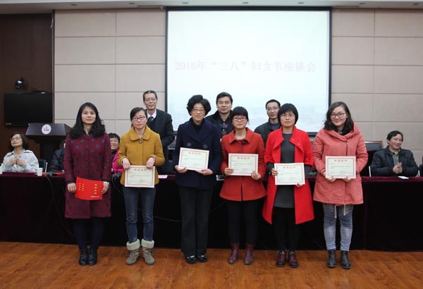 工会主席常华宣读了关于表彰2015年度优秀女教工的决定,张玲、杨晓波、黄越、高雅、李凡、王秦、周春兰、芦敏、江董玉等25位同志获表彰。党委副书记谈向群在节日贺词中指出,广大女教工在教育、教学、管理和服务等岗位上踏实工作、敬业奉献,为学校事业发展做出了重要贡献;并向全体女教工发出了三个“争做”的倡议,号召大家争做时代精神的先行者,争做中华民族传统美德的传承者和实践创先争优的红旗手。
