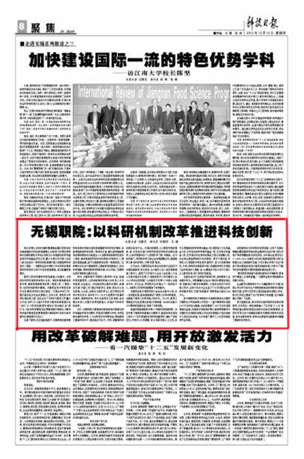 组建的智能制造技术等6个校级科技创新团队,先后申获了物联网信息融合关键技术、新型材料成型加工技术2个江苏省高校优秀科技创新团队,填补了学校空白;申报的238项课题,有65项获市级以上立项,其中立项国家自然科学青年基金2项,教育部人文社科基金2项,江苏省自然科学青年基金1项、江苏省社科基金1项、江苏省社科应用研究精品工程立项课题3项,在全省全国高职院校中名列前茅。更为可喜的是,申报的235项国家专利及软件著作权,有109项获得授权,并有2项科研成果获得中国人民解放军和江苏省轻工业科技进步三等奖、近150篇高水平论文在中文核心以上期刊发表,创了该校历史新高。