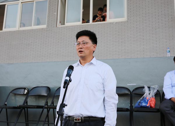 强伟纲处长宣布广播操前六名和体育道德风尚奖