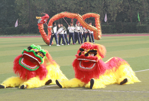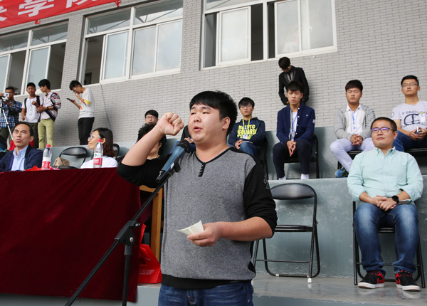 裁判员代表李铎和运动员代表葛强先后宣誓,校党委书记朱爱胜宣布2015年运动会开幕。随后进行了广播操比赛、舞龙表演和跆拳道表演。