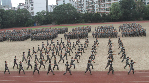 活动由学生处处长强伟纲主持。庄严的升国旗仪式后,全体新生进行了分列式、队列动作和军体拳表演,展示了十多天的训练成果。随后,谈向群副书记宣读了表彰决定,材料11531班周博等161名同学在军训中表现出色,获评优秀学员称号;朱爱胜书记、龚方红校长代表学校向承训部队赠送了锦旗。华坚副校长在讲话中对军训工作进行了全面总结,并代表学校向承训部队全体教官表示衷心的感谢和崇高的敬意,向圆满完成军训任务的全体新同学表示慰问和祝贺,他还要求同学们将军训的收获和成果巩固下来,贯穿到今后的学习和生活中,努力把自己培养成为全面发展的高素质人才。