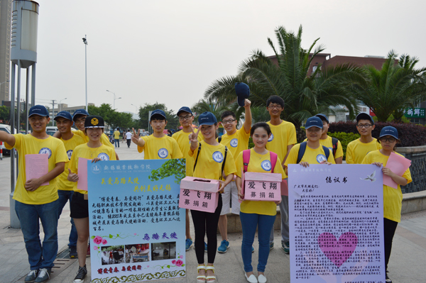 2013年暑假开始,我校大学生“三下乡”暑期社会实践活动中涌现出一支以关爱马路天使——环卫工人的志愿者队伍;2014年暑期,这支队伍正式命名为“爱飞翔”志愿者小分队;今年的暑假尚未拉开帷幕,这支爱的队伍早已行动起来,他们不仅通过线上线下为马路天使们募集爱心基金,还走上街头、深入到这个群体,体验他们的真实生活,用自己的努力为他们实现心愿。